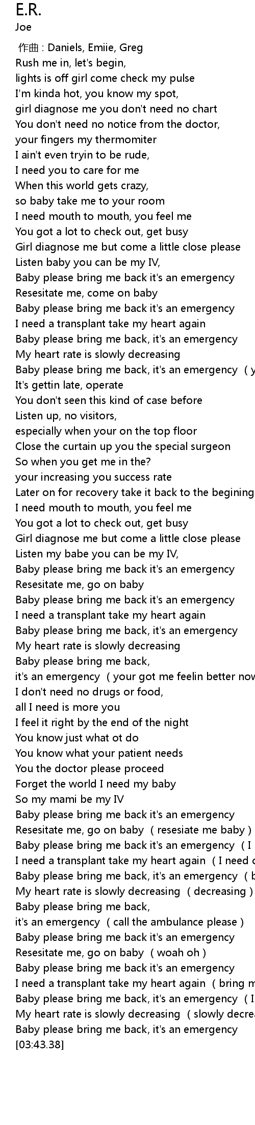 | [00:53.35] | Baby please bring me back it's an emergency |