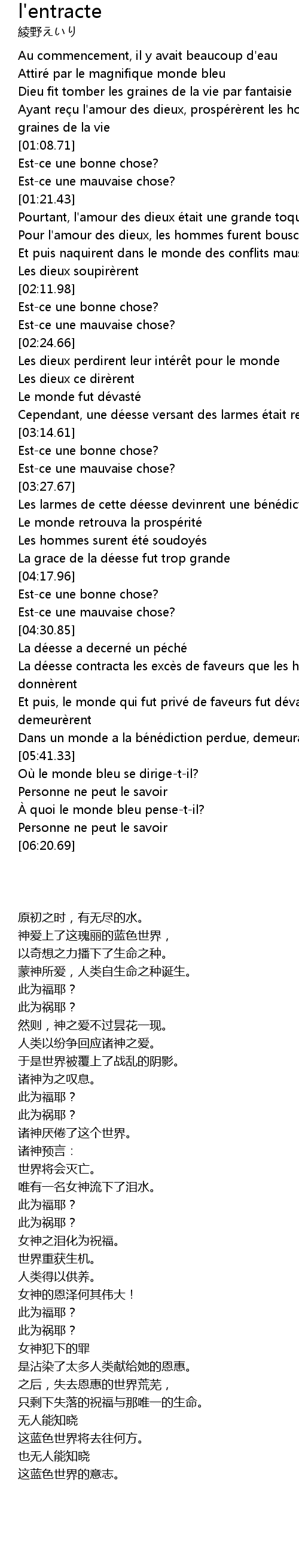 | [02:25.28] | Les dieux perdirent leur intérêt pour le monde |