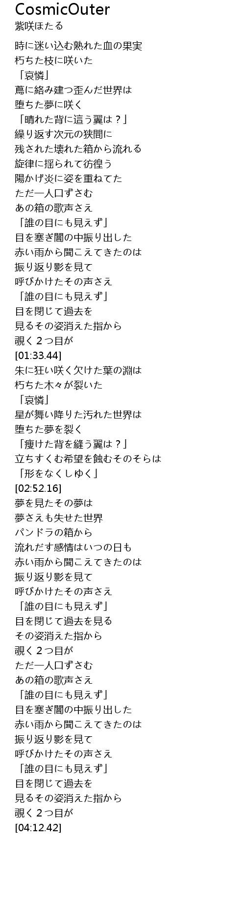| [00:40.50] | 繰り返す次元の狭間に |