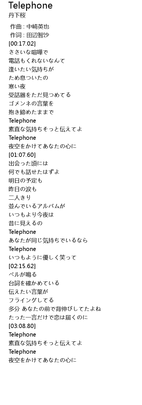 | [03:11.00] | 素直な気持ちそっと伝えてよ |