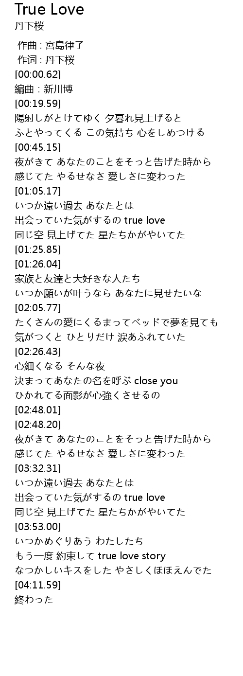 | [04:02.48] | なつかしいキスをした やさしくほほえんでた |