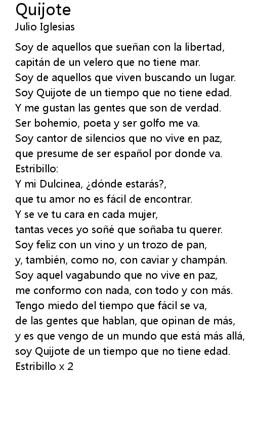 | Soy Quijote de un tiempo que no tiene edad. | |