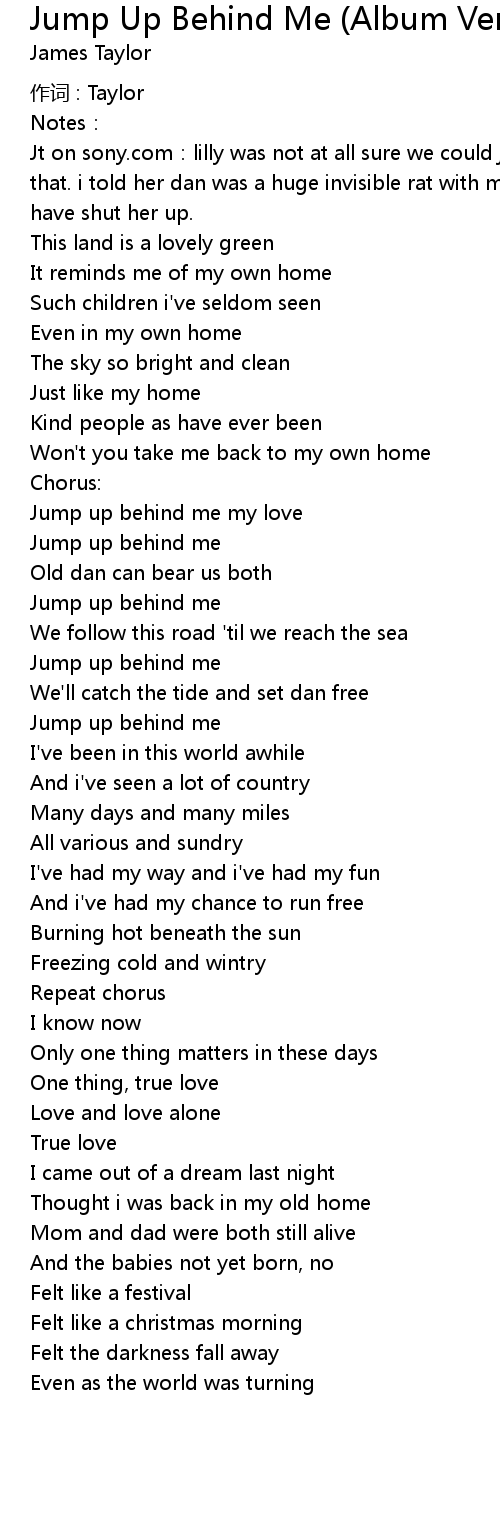 | 歌曲 | Jump Up Behind Me (Album Version) |