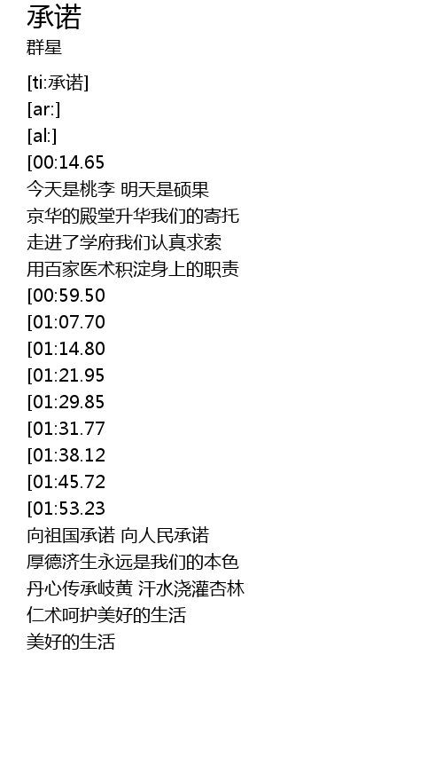 | [03:18.92] | 向祖国承诺 向人民承诺 |