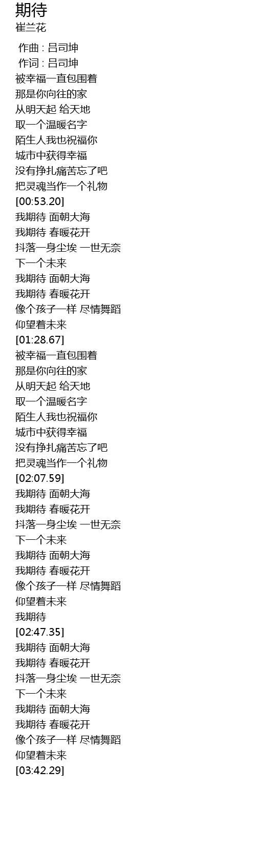 | [03:25.39] | 我期待 面朝大海 |