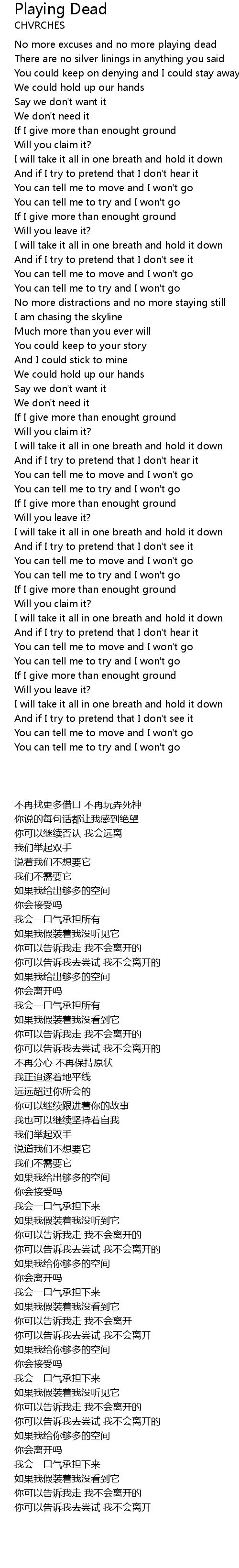[00:10.240] 不再找更多借口 不再玩弄死神