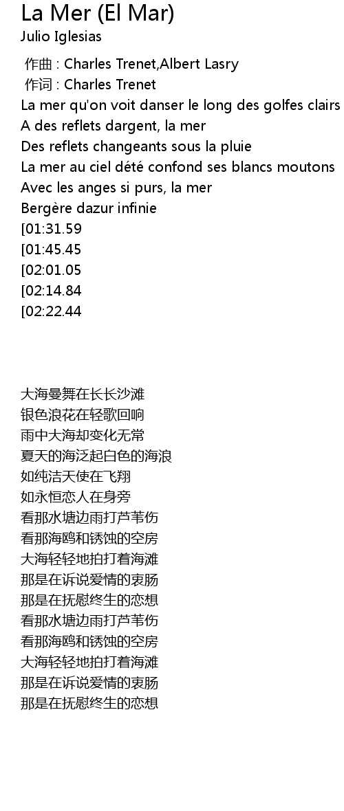 | [00:01.00] | 作词 : Charles Trenet |