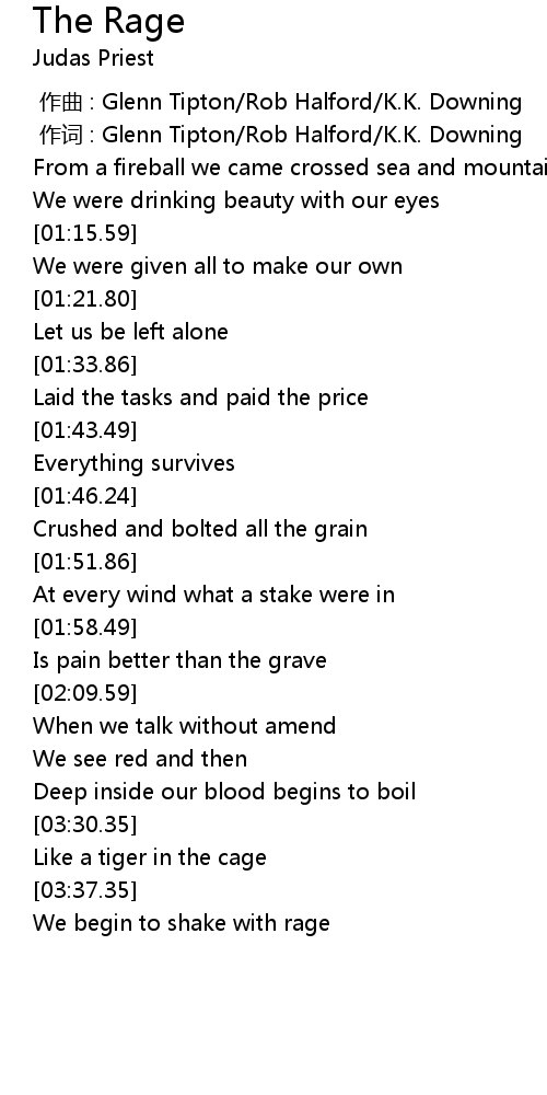 | [00:01.00] | zuò cí : Glenn Tipton Rob Halford K. K. Downing |