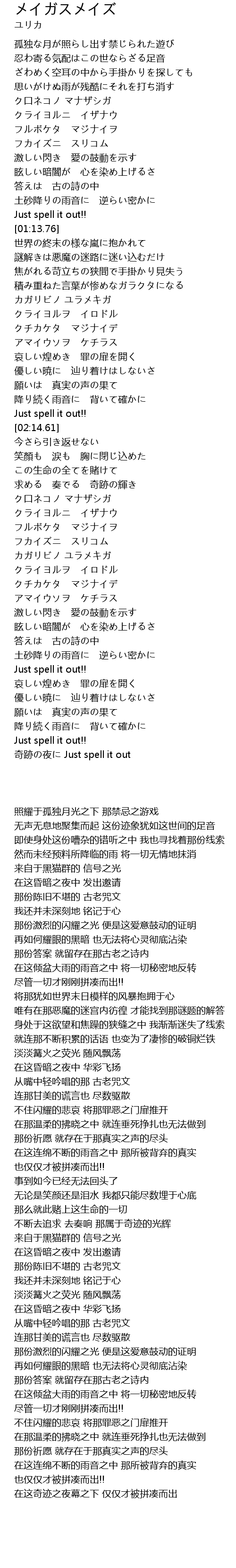 | [03:14.56] | 那份答案 就留存在那古老之诗内 |