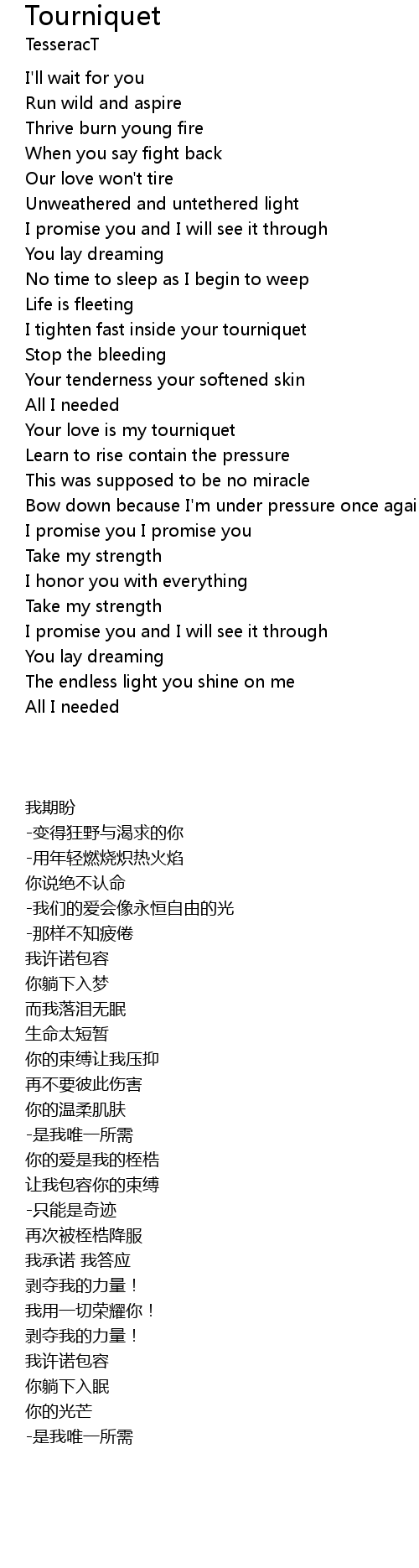 I tighten fast inside your tourniquet |