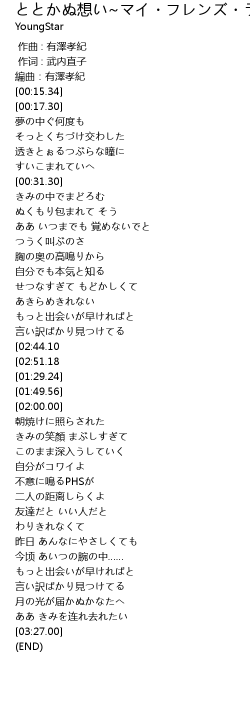 | 歌曲 | ととかぬ想い~マイ・フレンズ・ラヴ |