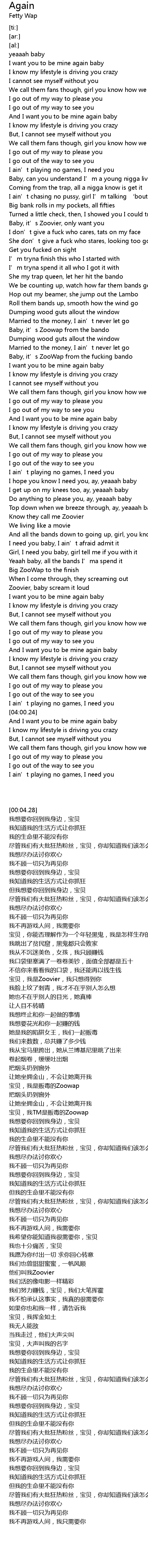 | [01:40.99] | Baby, it’s ZooWap from the fucking bando |
