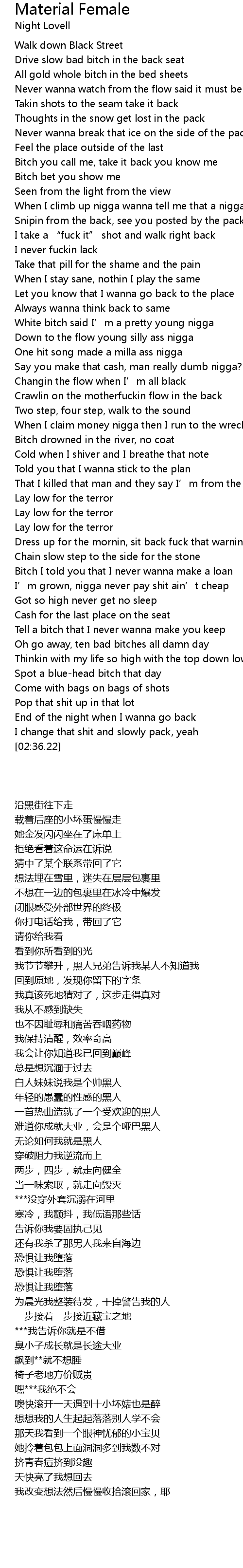 | [01:06.72] | White bitch said I’m a pretty young nigga |