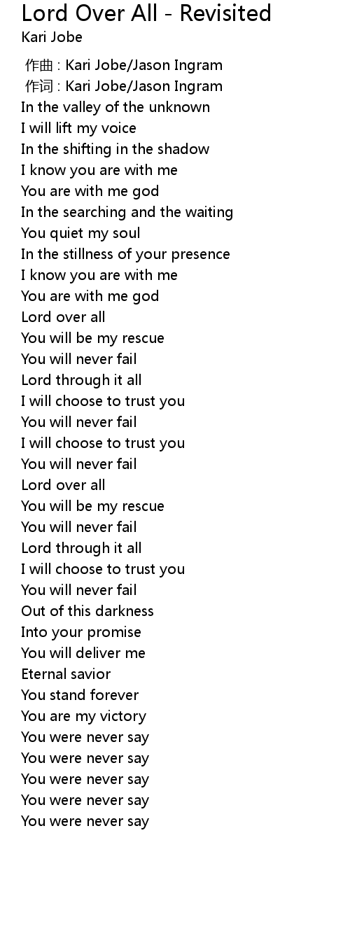 | [00:00.00] | 作曲 : Kari Jobe/Jason Ingram |