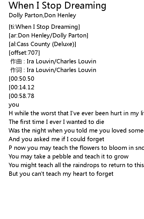| [00:00.70][00:50.50][01:40.83][02:14.34][02:31.13] | When I stop dreaming |