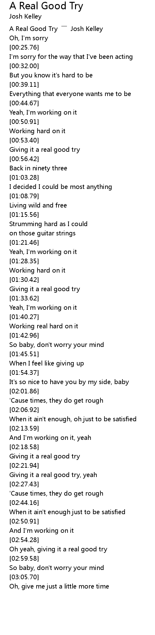 | [00:00.79] | A Real Good Try Josh Kelley |