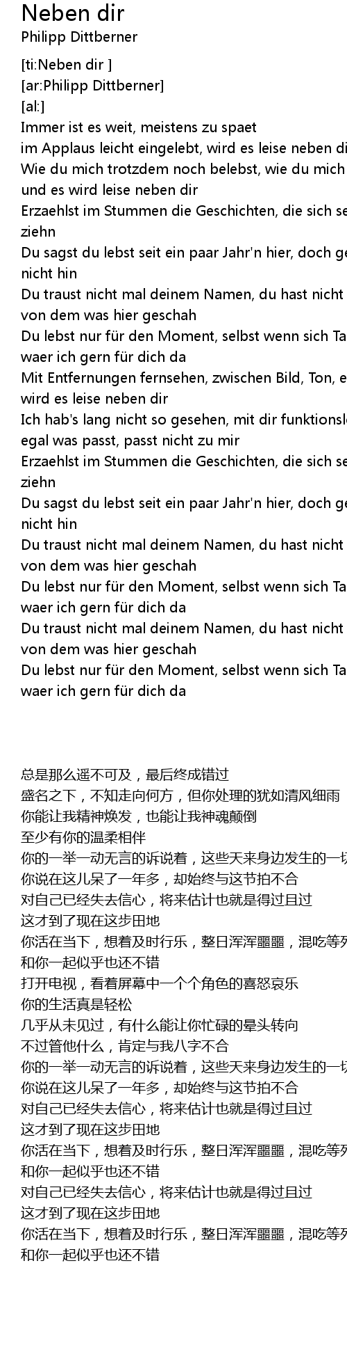 | [00:42.94] | im Applaus leicht eingelebt, wird es leise neben dir |