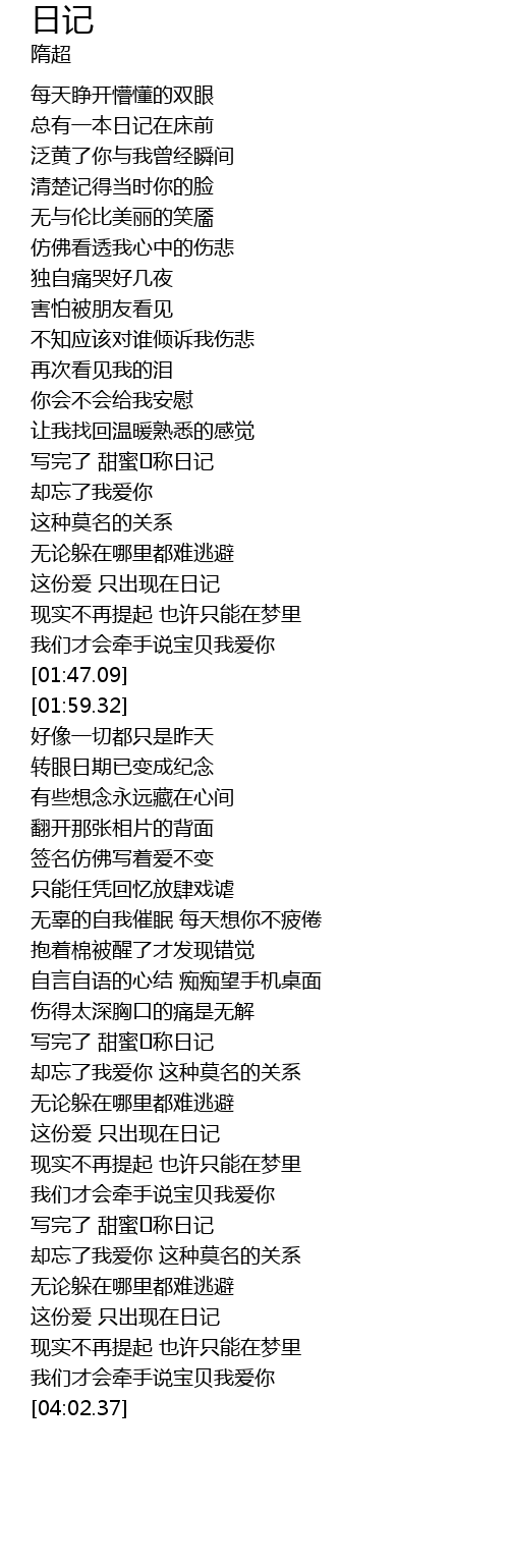 | [02:56.62] | 写完了 甜蜜�称日记 |