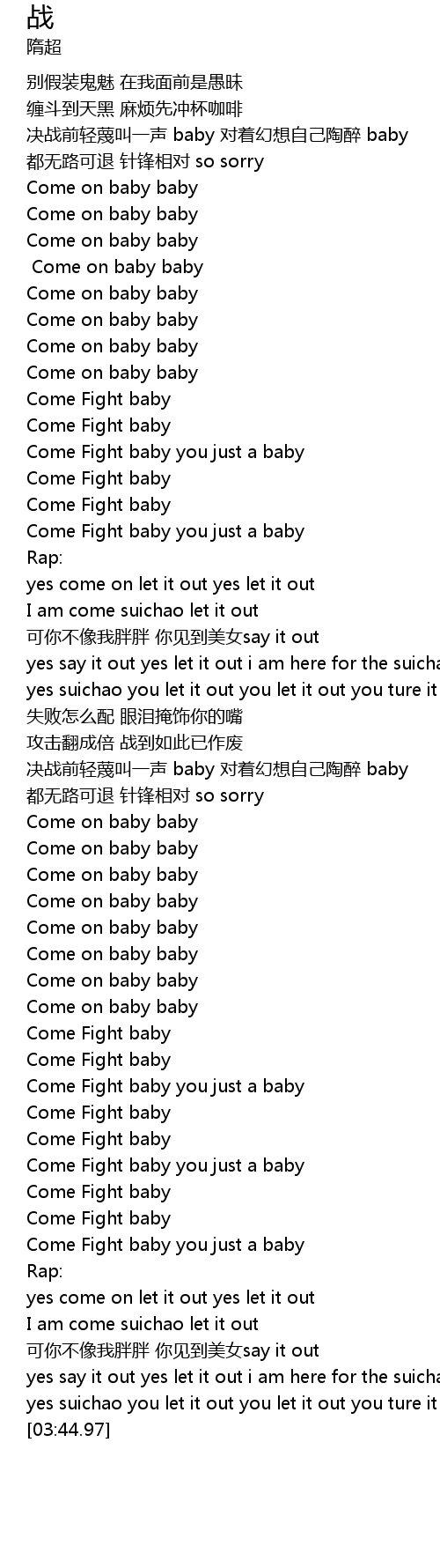 | [03:40.92] | yes suichao you let it out you let it out you ture it loud |