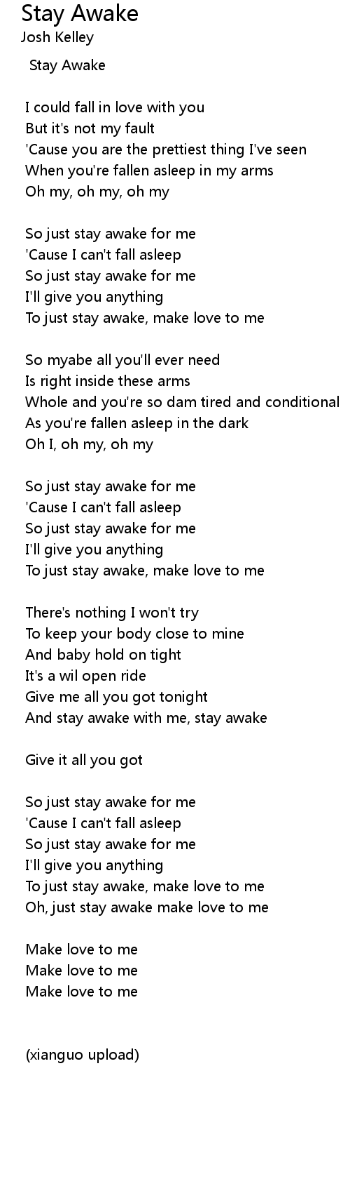 To just stay awake, make love to me