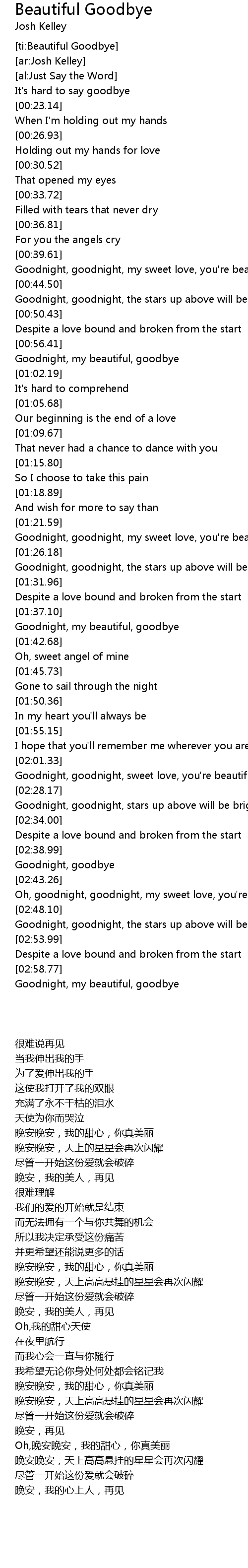 Oh, goodnight, goodnight, my sweet love, you're beautiful |