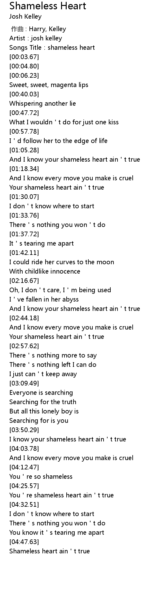 | [00:52.53] | What I wouldn't do for just one kiss |