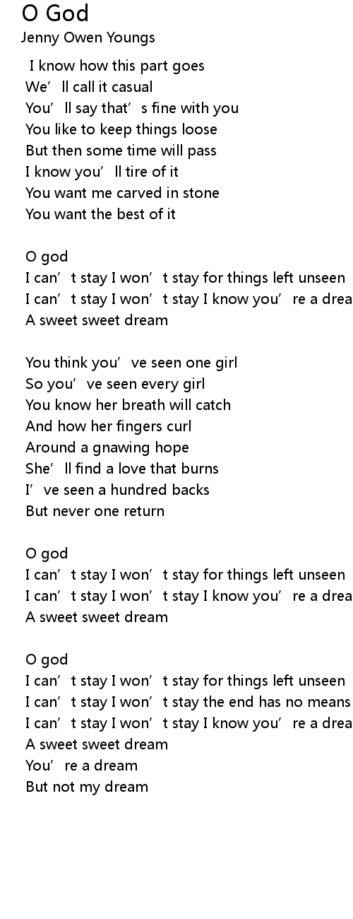 | I can’t stay I won’t stay I know you’re a dream | |