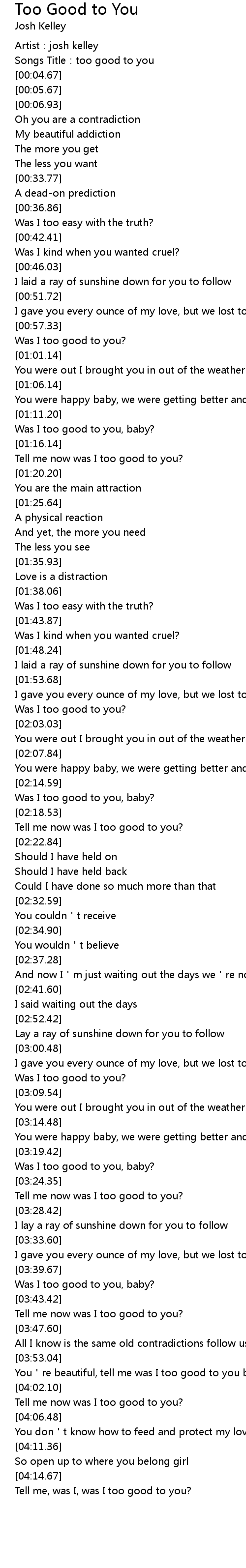| [04:16.29] | Tell me, was I, was I too good to you? |