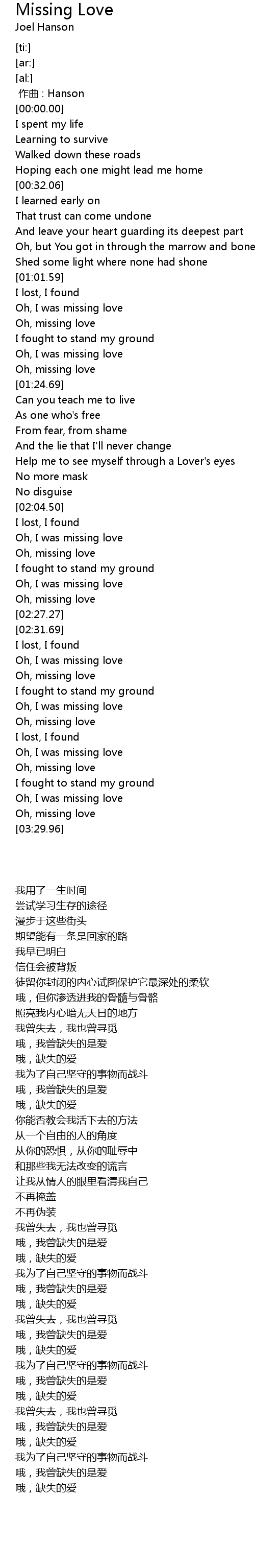 | [02:59.68] | 哦,我曾缺失的是爱 |