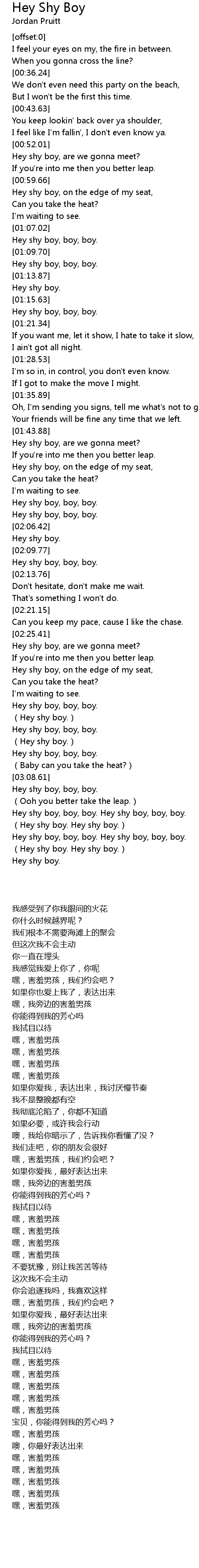 | [03:17.81] | Hey shy boy, boy, boy. Hey shy boy, boy, boy. |