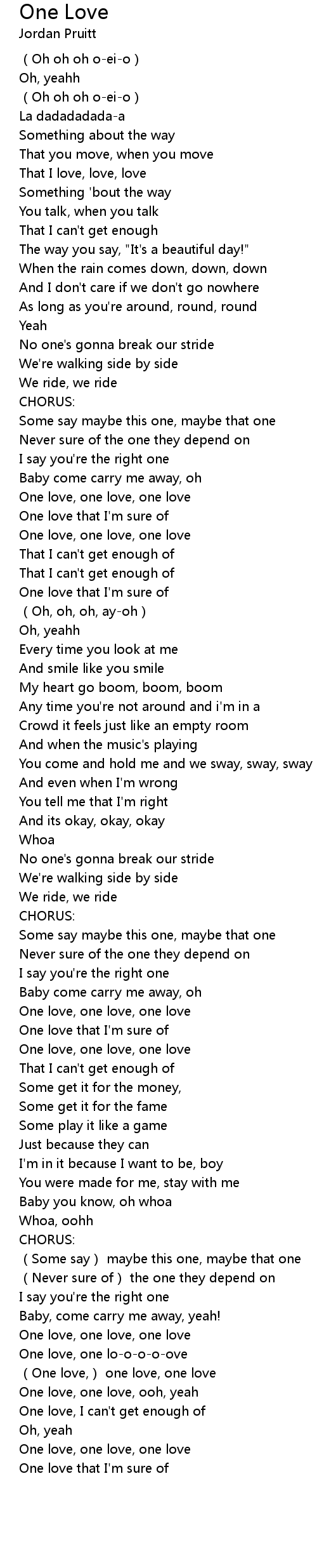 | [00:50.220] | One love, one love, one love |