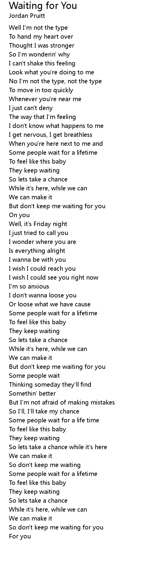 So don't keep me waiting for you |
