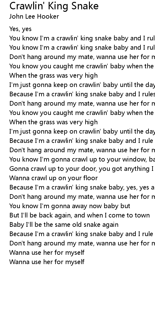 Because I'm a crawlin' king snake baby, yes, yes and I rule my den |