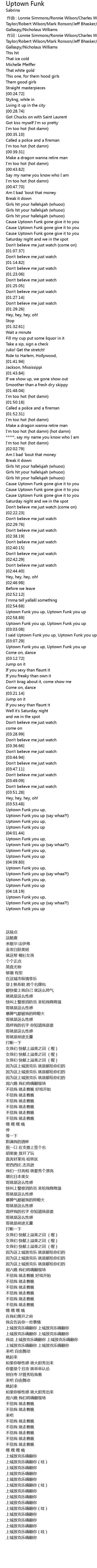 | [00:01.00] | 作词 : Lonnie Simmons/Ronnie Wilson/Charles Wilson/Rudolph Taylor/Robert Wilson/Mark Ronson/Jeff Bhasker/Bruno Mars/Philip Lawrence/Devon Gallaspy/Nicholaus Williams |
