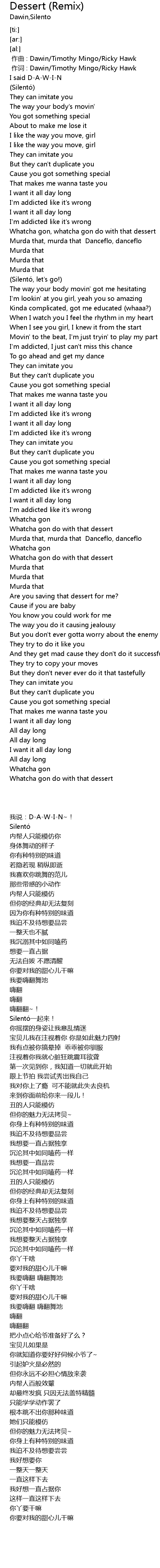| [00:00.685] | 作词 : Dawin/Timothy Mingo/Ricky Hawk |
