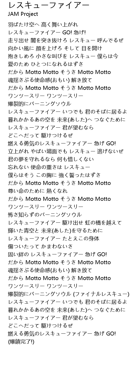 | 歌曲 | レスキューファイアー |