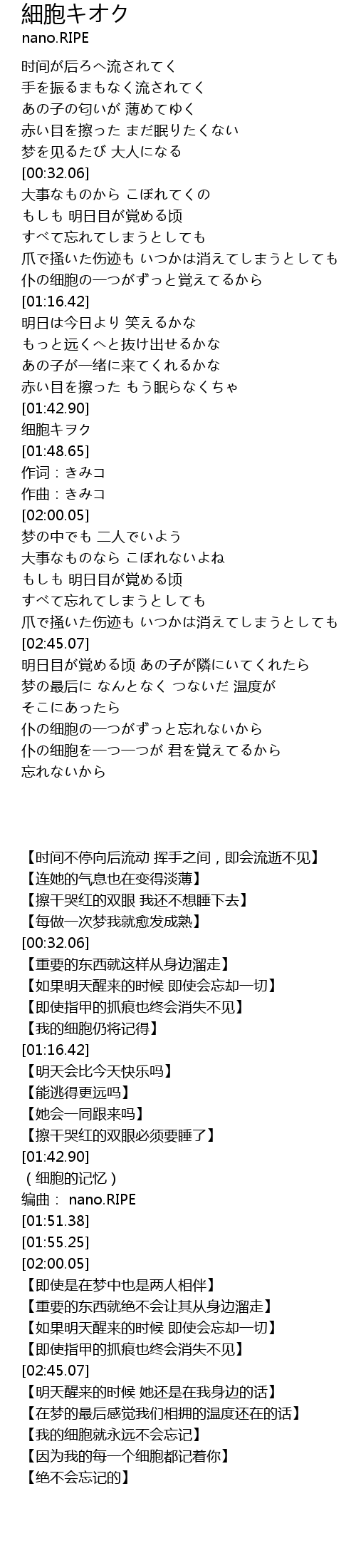 | [03:10.13] | 仆の细胞の一つがずっと忘れないから |