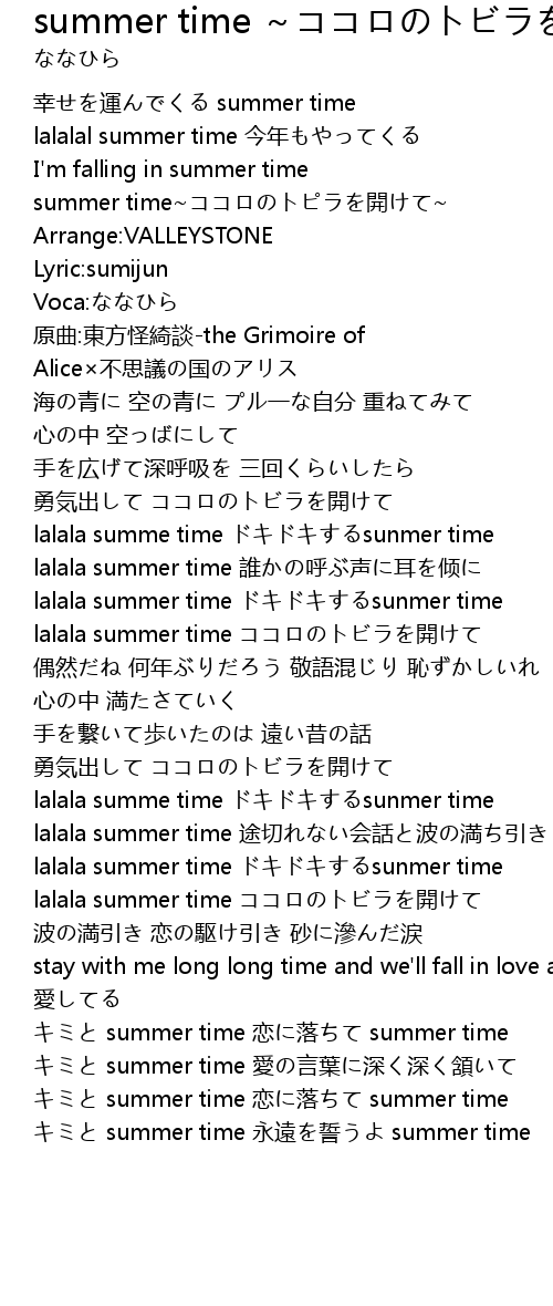 | [00:59.33] | lalala summe time ドキドキするsunmer time |