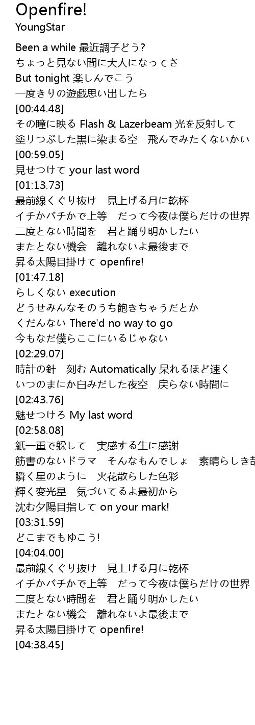 | [04:33.70] | 昇る太陽目掛けて openfire! |