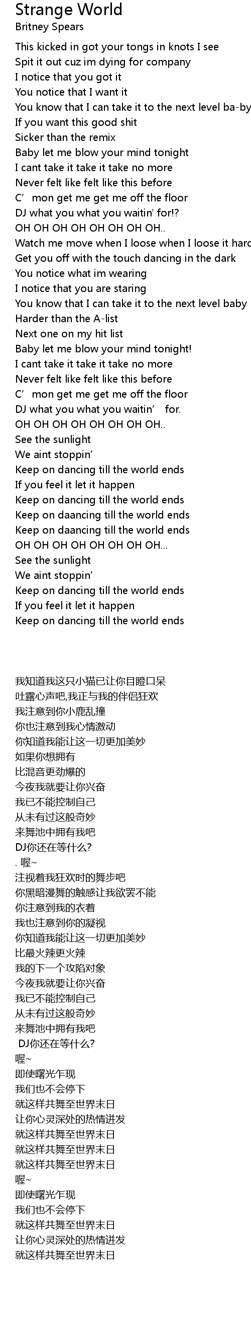 | [02:48.92] | Keep on dancing till the world ends |