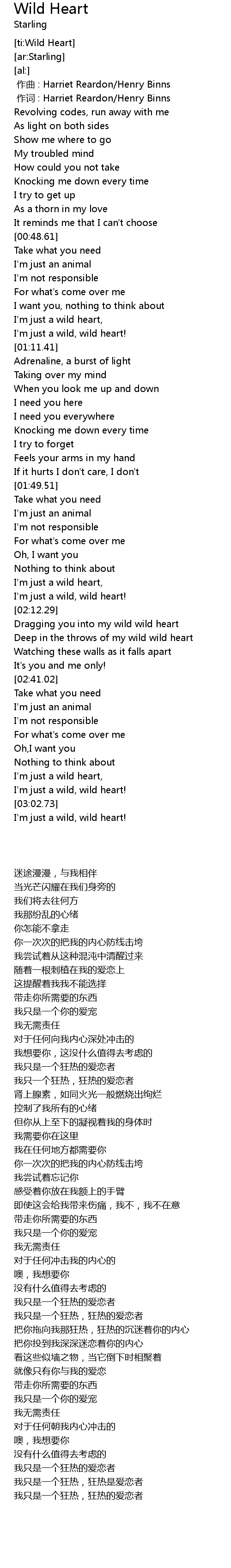| [02:27.91] | Deep in the throws of my wild wild heart |