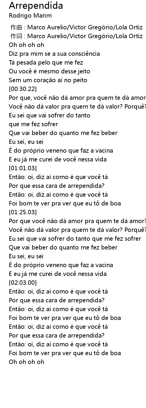 | [02:28.81] | Por que essa cara de arrependida? |