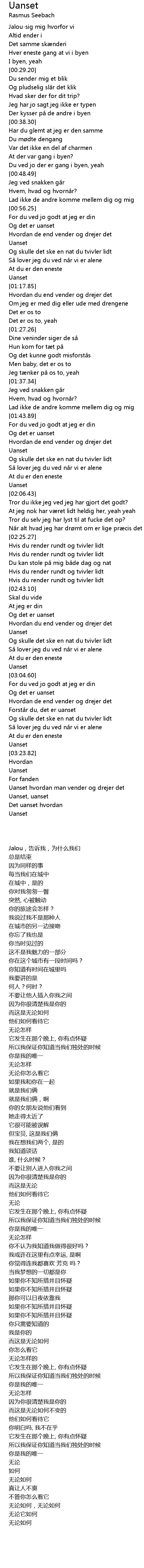 | 歌曲 | Uanset |