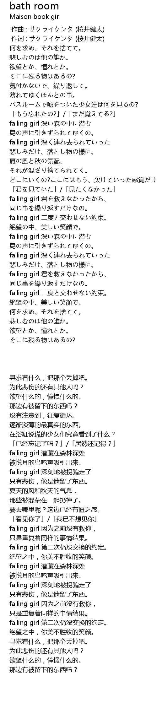 | [02:57.05] | falling girl shēn sēn zhōng qián |