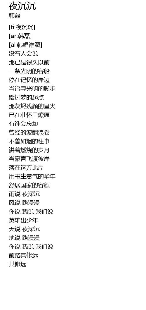 | [03:03.90] | 天说 夜深沉 |
