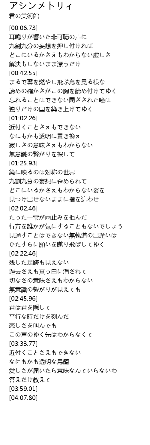 | [03:40.30] | なにもかも透明な鳥籠 |