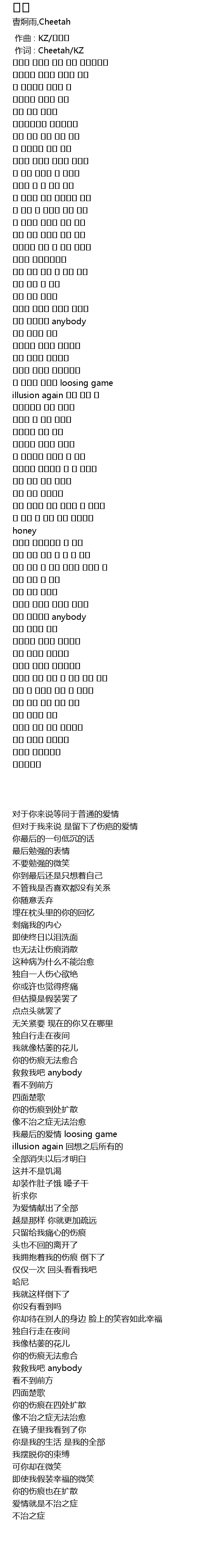 作词 : Cheetah/KZ |
