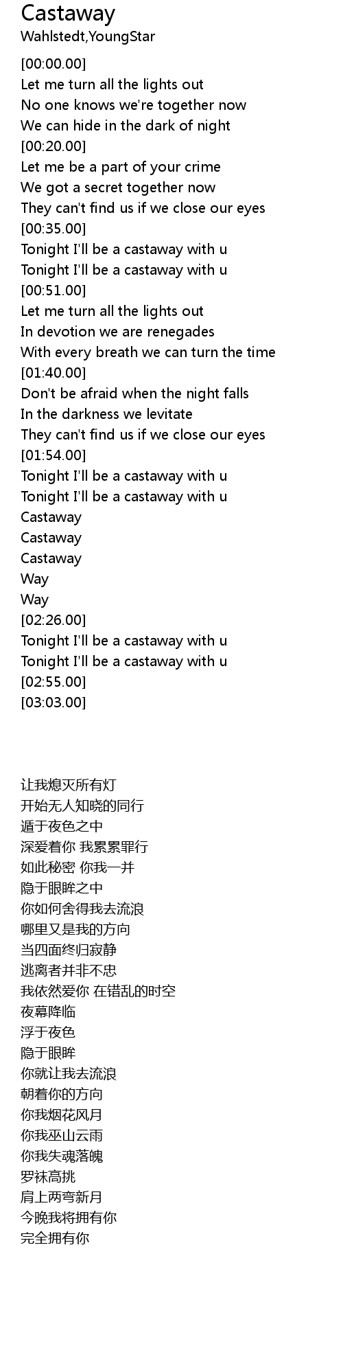 Tonight I'll be a castaway with u |