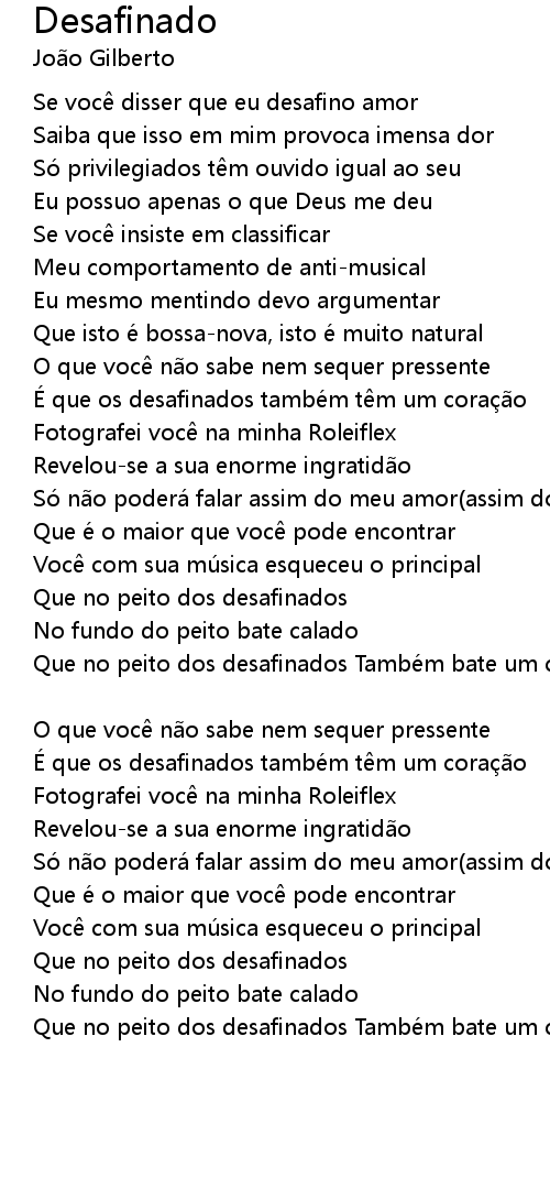 | Se voc disser que eu desafino amor | |