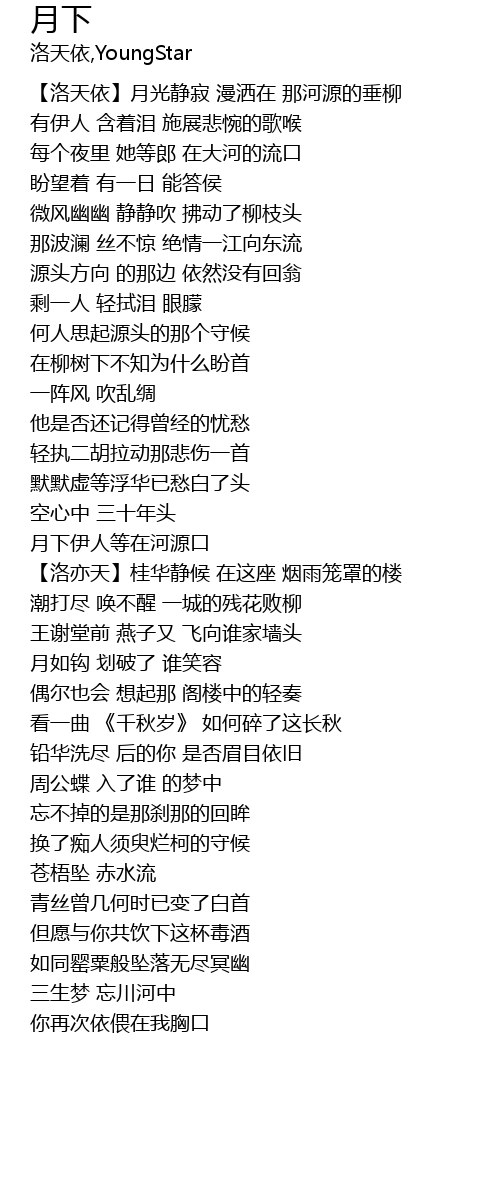 | [02:10.26] | yuè xià yī rén děng zài hé yuán kǒu |